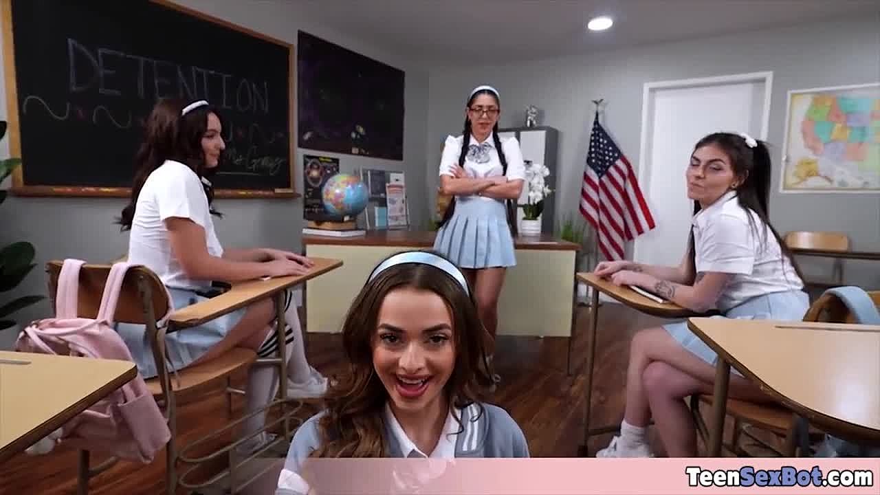 Hey, watch this horny school-girl get her unshaved cooch smashed by teacher in class for wild xxx fun!