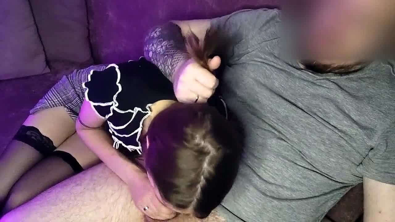 Petite Girl in Stockings Sucks and Deepthroats Cock Before Missionary Fucking.