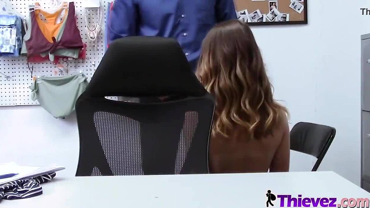Shoplifter Emma assists LP officer with his naughty needs at work
