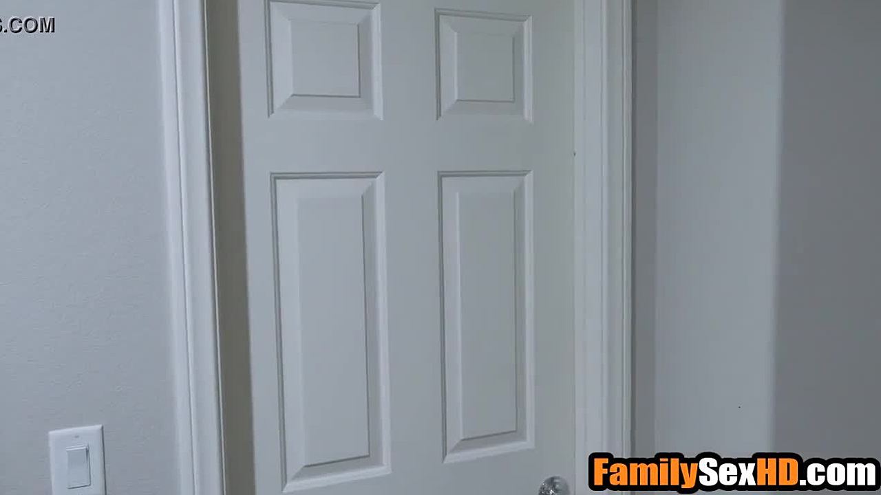 latina stepdaughter serena santos caught masturbating, deepthroats sleeping stepdad hiding from stepmom