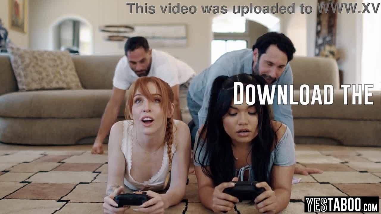 chubby step daughter teams up with stepmom for hot threesome. daddy joins the famslut action!