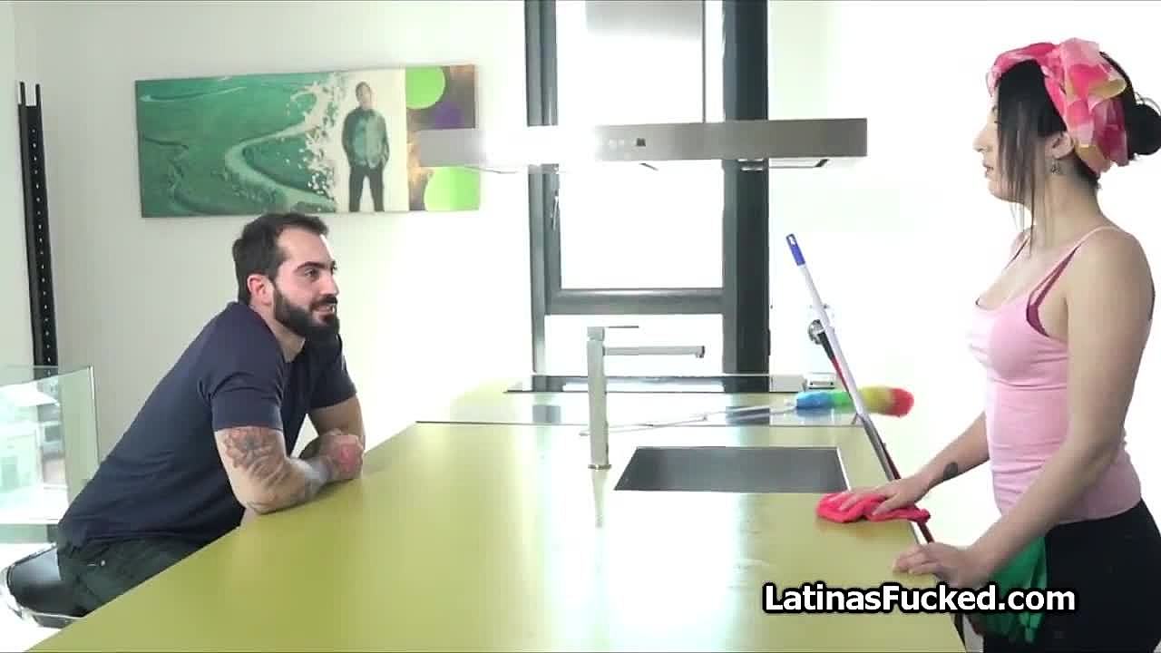 slutty maid flashes hairy wet pussy to boss for dirty raise fuck